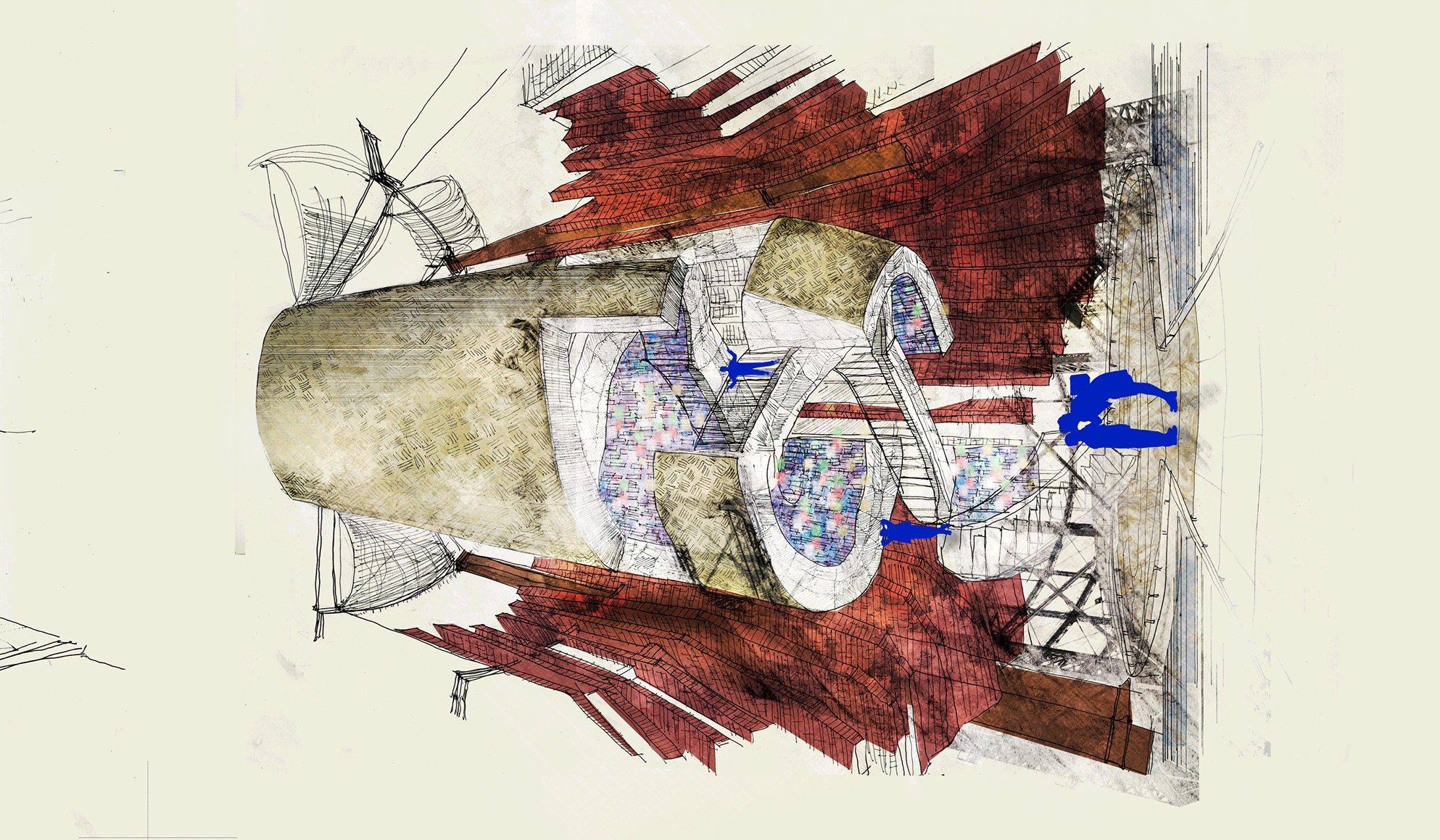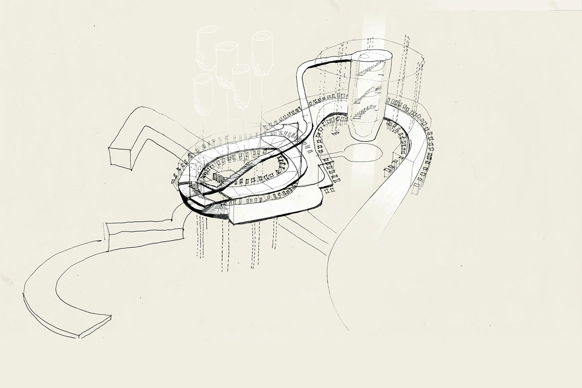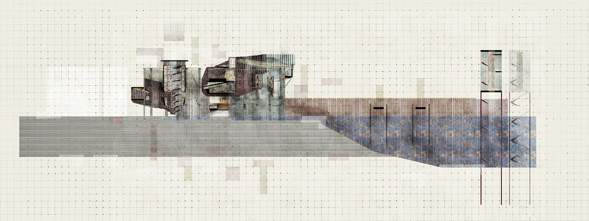 Aiming to strategically understand that the removal, accurate archiving and transportation of a variety of priceless artifacts and relics in the city could be impossible in the event of a flooding, constructing an archive that could exist pre and post flood summon a vital function to the gasometers. If these dual conditions were to exist, they would place themselves on polarizing ends of a time line. The Venetian Archive would need to withstand time and weather, providing protection to it's collections. Cautiously constructing architectural ligaments that bandage these conditions and events fastening to the existing structure, the archive supports a series of capsules accessed by a ramp. The ramp is ascended in current day use, and descended