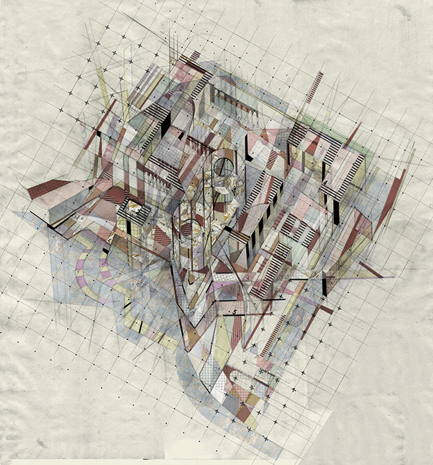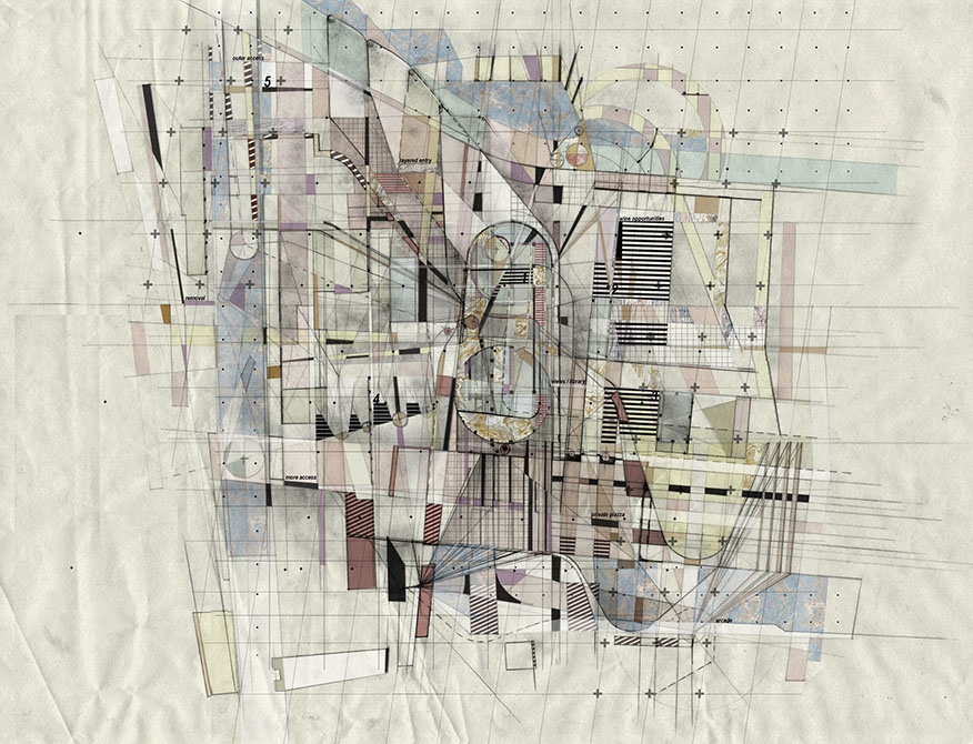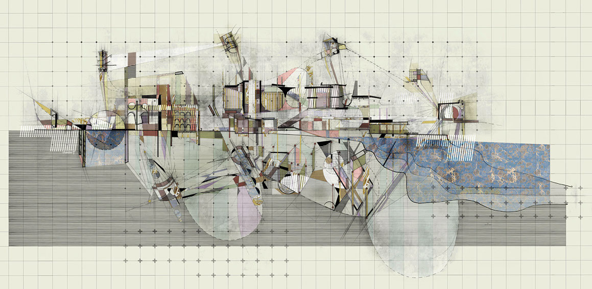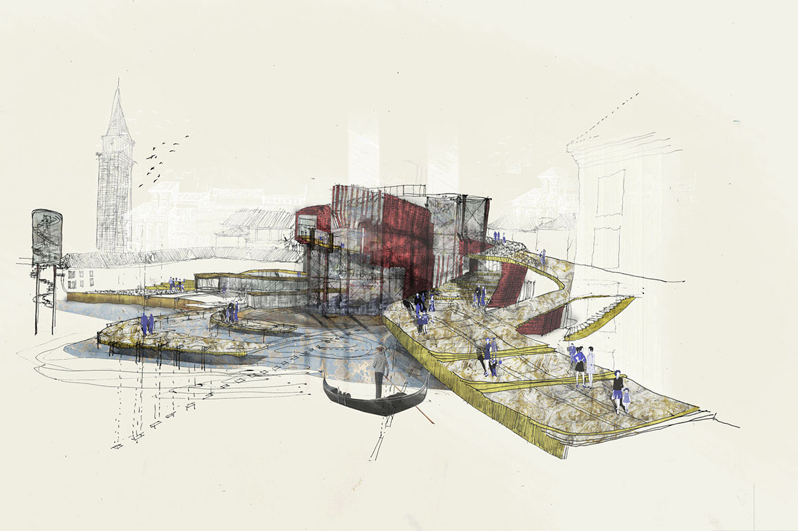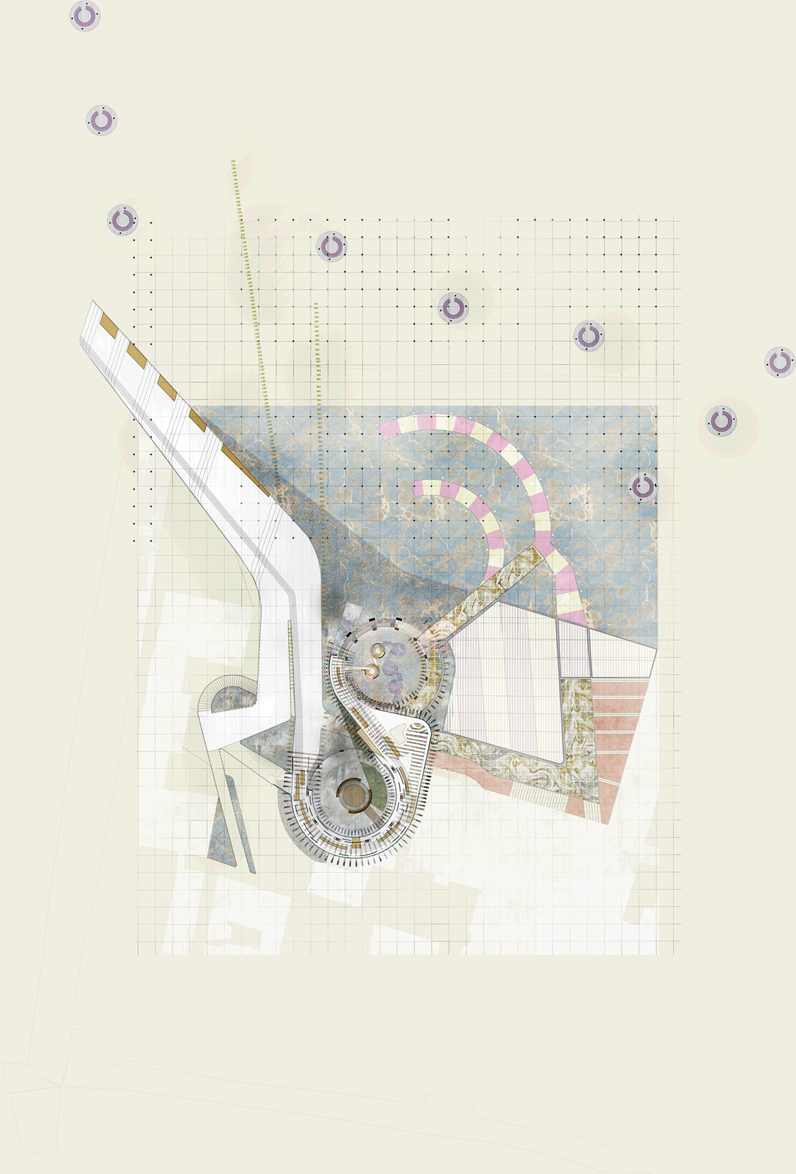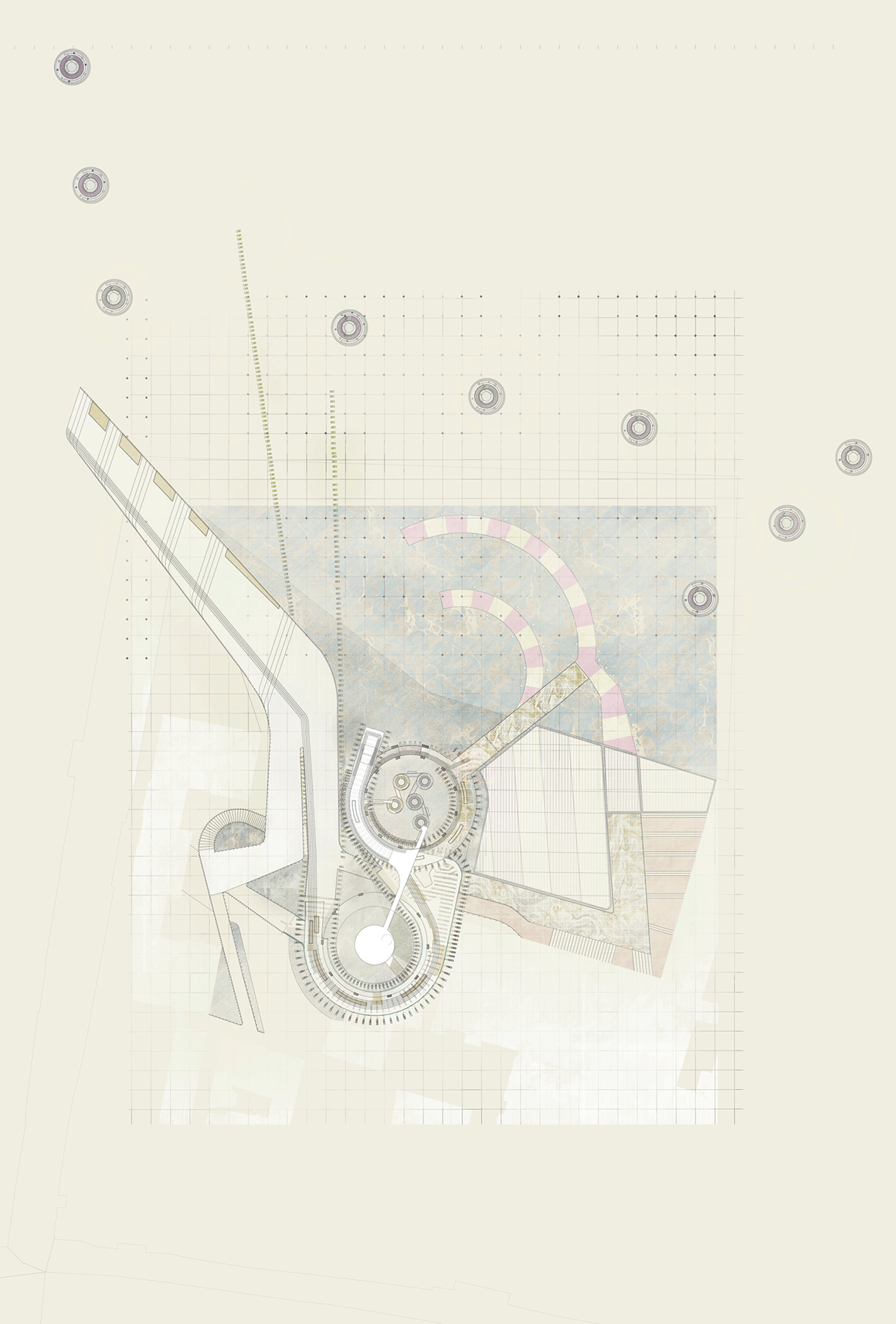 Venice, Italy - Working at the site of two former gasometers, seemingly alien to their Venetian Context, the two vessels, block public access between vital cultural institutions along the "Fundamenta" in Venice. The towering structures, walled off, bar quick access to an adjacent convent, Palladian Church and strong links to open water access to the Venetian Lagoon. Examining these confines in the greater context of Venice and being aware of the diminishing cultural identity due to touristic business ventures, helped to create a specific filter for the reuse of these gasometers. Time, traffic, and identity guide analysis on the site through a series of critical drawings interrogating movement in the past fifty years, decade by decade, the next fifty years, decade by decade, and their ligature, one hundred years from now. By defining movement not just through public traces, intersections and spatial discoveries are recorded as overlapping, boundless additions to an occupants renewed journey through the gasometers. The following series analyze these parameters while providing visual data as subconscious clues to contextualizing the site. The documents archive a palimpsest of information that, would provide clues to the vestige of this area if Venice were to potentially flood. With this, the project inspects the prospect of a future flooding, imagining these introductory drawings a map of below water Venice.