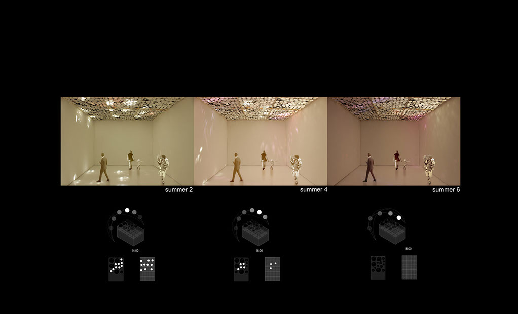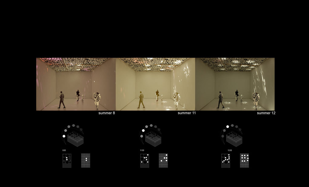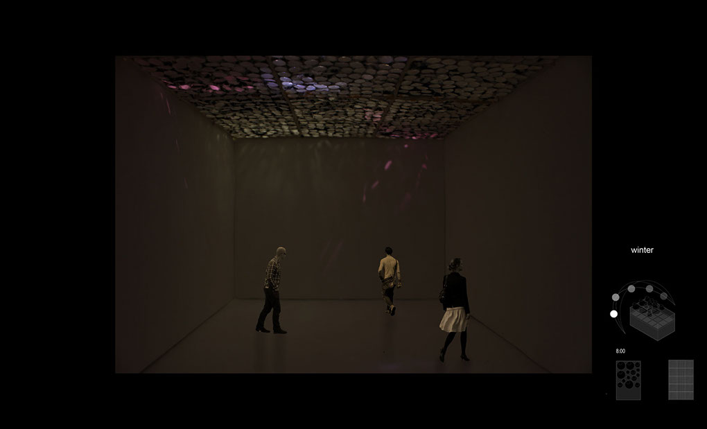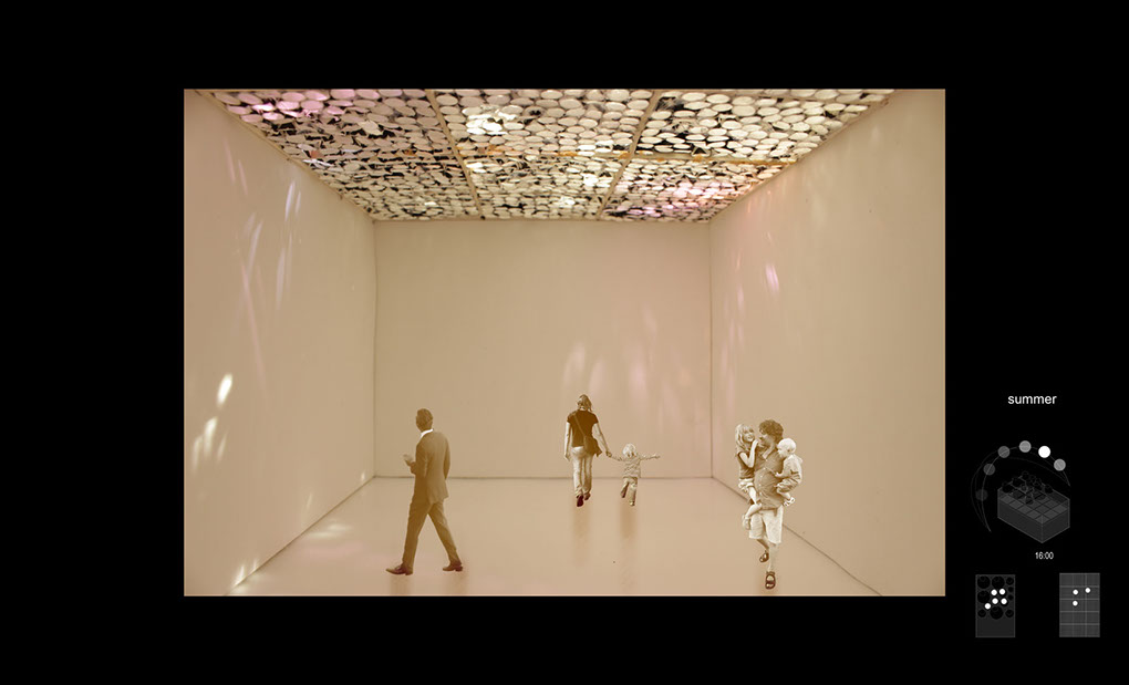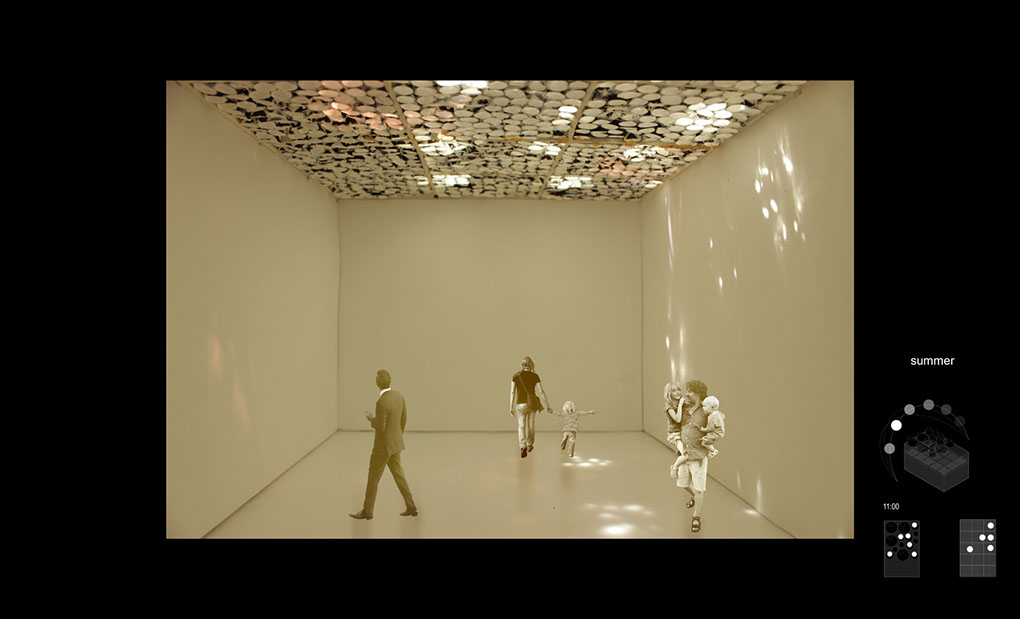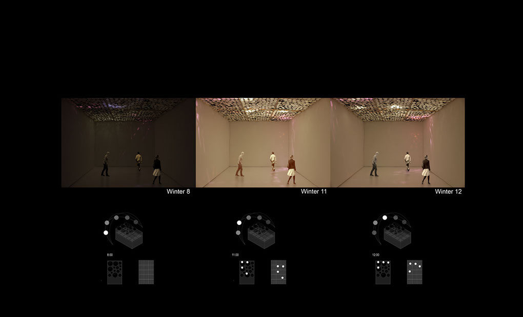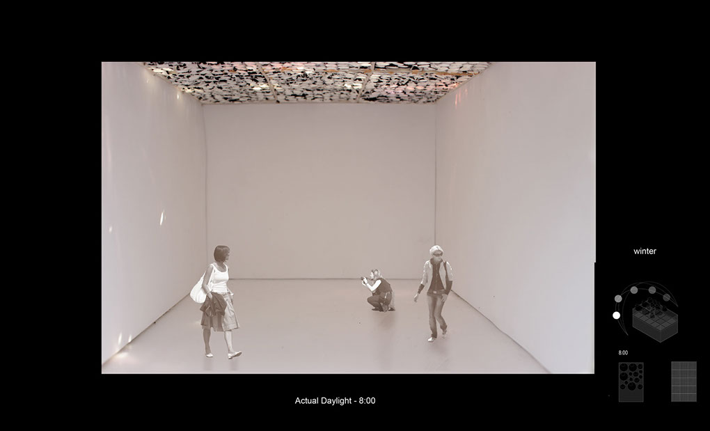 Modeling Daylight is an exploration into the architecture of light. How do we use light as a phenomenal addition to our spaces, to effect mood, movement, sound, etc. for applications that work in actuality with light from the sun?