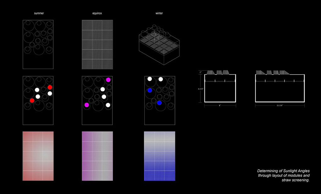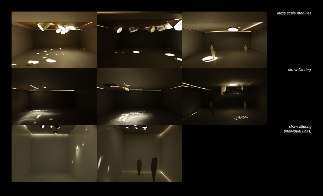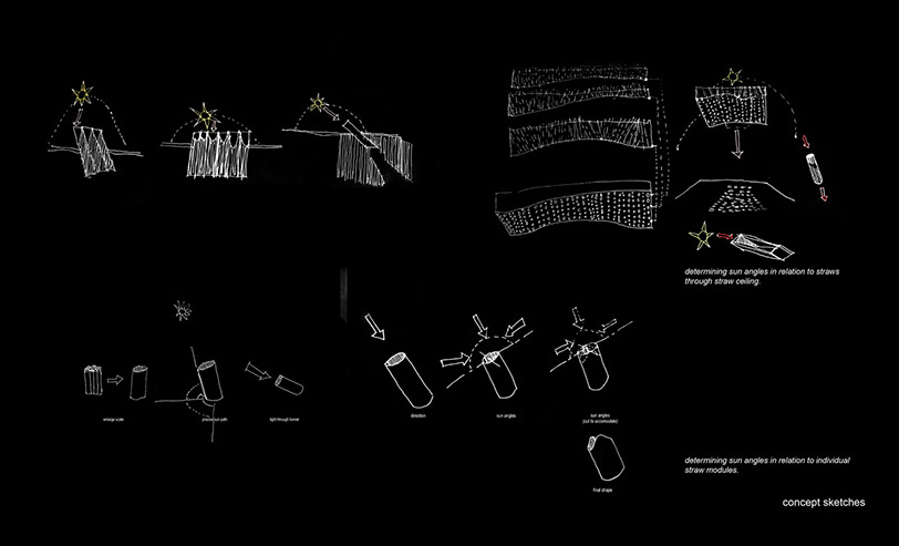 Early sketches and models began to look at the effects of dappled light and methods to create it. Using Straws as a fliter, light becomes difficult to capture and funnel; only working in direct light positioning.
